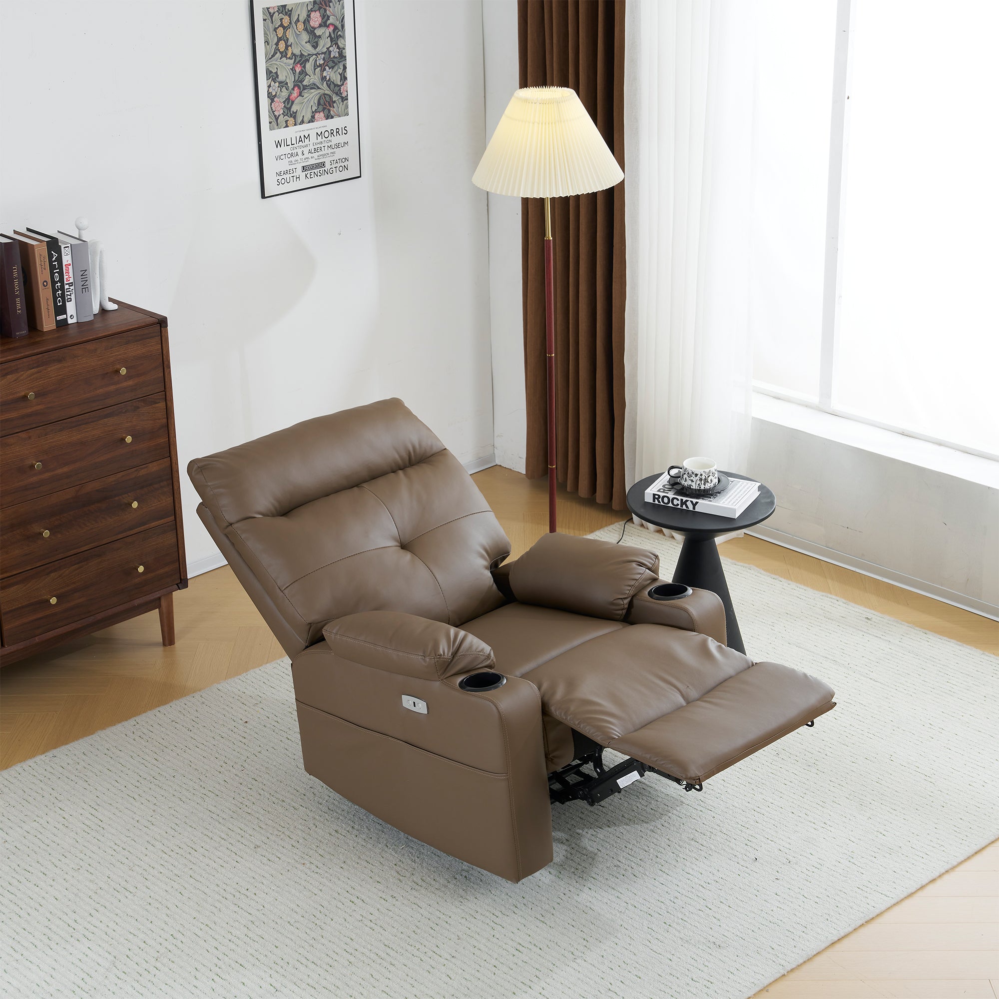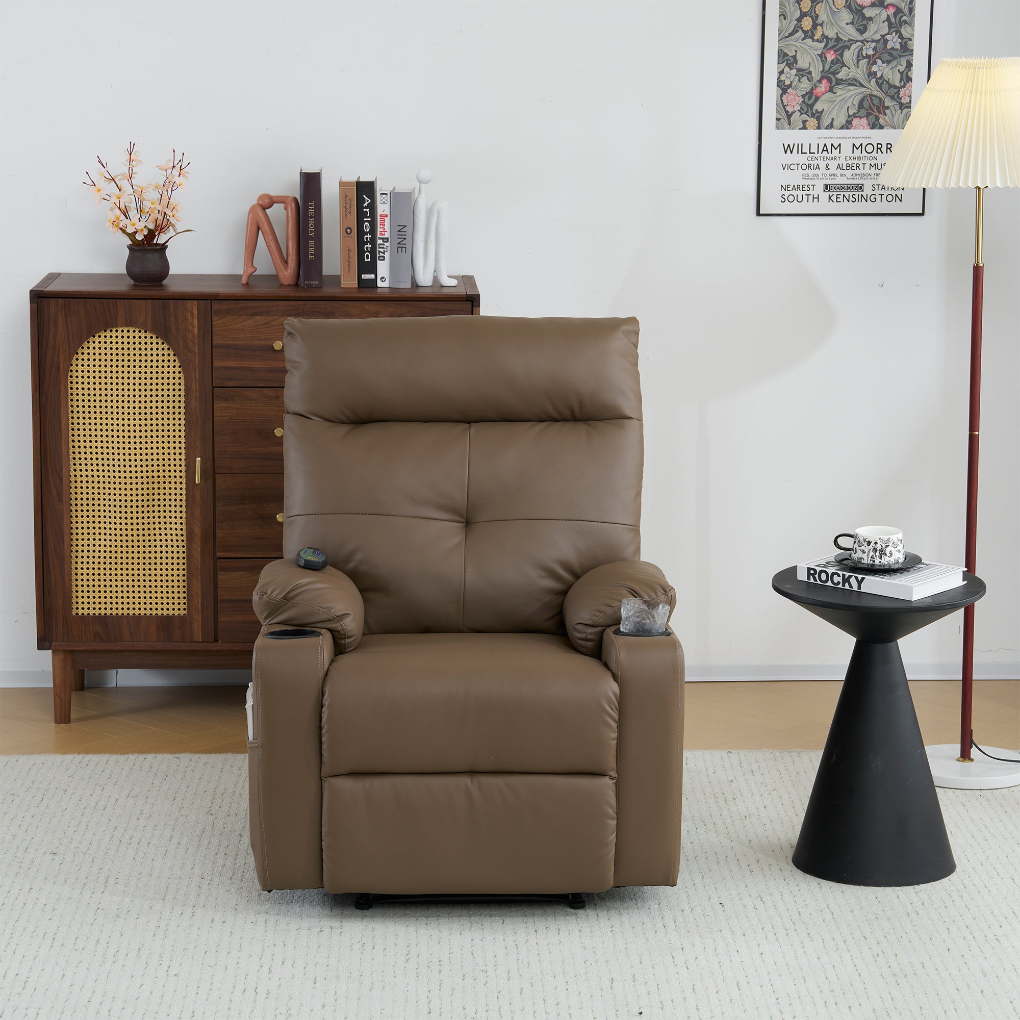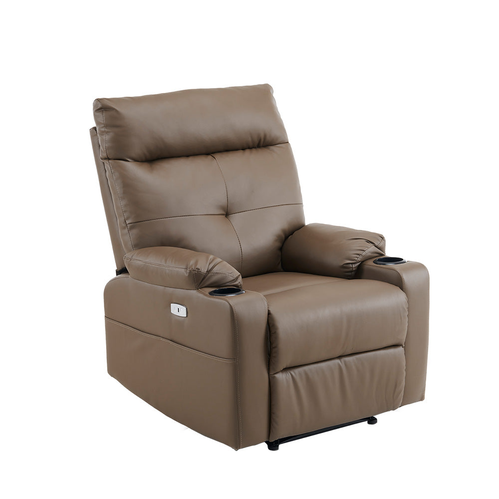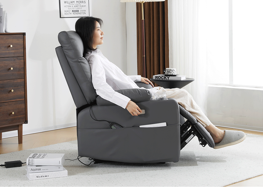 ◆01快適なリクライニングソファで至福のひとときを ふんわりとしたクッションが全身を包み込み、深いリラックス効果をもたらします。長時間座っても疲れにくく、やさしいサポートがあなたの体を癒します。リモコン操作で振動機能を調整し、より快適でリラックスした時間をお届けします。 ◆02シンプルかつエレガントなデザイン どんなインテリアにも自然に溶け込むシンプルかつエレガントなデザイン。高級感と快適さをプラスし、空間をスタイリッシュに演出します。 ◆03リモコン操作で使い簡単! ①:電源ボタン ②:強さ調節 ③:モード調節 ④:振動位置調節 ⑤:タイマー設定 ※ご注意ください 「NECK」ボタンについて、商品画像には表示されていますが、実際には機能しません。出荷された商品は、右側のようにシールで覆われており、ボタンが見えない仕様となっております。何卒ご理解のほどよろしくお願い申し上げます。 ◆04サイドボタンで簡単リクライニング 座面の側面に配置されたボタンを軽く押すだけで、誰でも簡単にリクライニング操作ができます。 従来のレバー式に比べ、力を入れる必要がなく、どなたでもスムーズに使えるよう設計されています。 ◆05約165度余裕のリクライニング リクライニング角度は最大165度まで調整可能。お好みの角度で、まるでベッドにいるかのような快適さを味わえます。うっかり眠ってしまうほどのリラックスを提供します。 ※角度を調整する際には、周りに小さな子供やペットがいないことに気を付けてください。誤って彼らに怪我をさせてしまうことがないようにするためです。 ◆06わずかな距離でリクライニングが可能。後ろに壁があっても使いやすく、スペースを有効に活用できます。 ◆07頭から足先まで極上の座り心地を実現 頭から足先までをサポートする厚みのあるクッションで、極上の座り心地を実現。 ヘッドレスト、背もたれ、座面、肘掛け、フットレストすべてが柔らかく、体を優しく包み込みます。もたれた瞬間から全身がリラックスできるよう設計されています。 #1.ハイタイプヘッドレスト 首や肩の負担を軽減し、頭を優しく支えるデザインで、快適なリラックスタイムを提供します。 #2.背もたれ 柔らかく包み込まれる感覚で、ゆったりとした時間を楽しめます。 #3.弾力のある座面 適度な硬さのウレタンフォームが体をしっかりサポートし、長時間座っても疲れにくい設計です。 #4.フットレスト 足を伸ばしても十分な広さがあり、快適なリラックスを提供します。 #5.肘掛け ちょうど良い高さでひじを置いて、心地よいリラックスタイムをお楽しみいただけます。 ◆08上質な快適さと耐久性を兼ね備えたPUレザー 柔らかな手触りと独特の光沢感が、家具に高級感を与えます。 日常使いにも適した耐久性があり、引っ掻きや汚れにも強く、お手入れも簡単です。長期間にわたり美しい姿を保ち、リビングルームにエレガンスと快適さを提供します。 シンプルなお手入れ、汚れたら濡れタオルですぐにキレイに。簡単で便利なお手入れが可能です。 ◆08他にも、見逃せないこだわりがいくつかございます。 #1.日常生活を便利にするドリンクホルダー 手軽に飲み物を置けるドリンクホルダー付き。 テレビや読書を楽しみながら、飲み物を手元に置いてリラックスできます。 #2.充電も便利なUSBポート搭載 USBポートが装備されているので、リラックスしながらスマートフォンやタブレットの充電が手軽に行えます。日常の生活に便利さをプラスします。 #3.便利な収納ポケット付き リコモド、タブレットや雑誌など、さまざまなアイテムを収納できるポケットが装備されています。お気に入りの本やデバイスを手元に整理して、快適な時間を過ごすことができます。 #4.電源コード収納スペース付き 電源コードを収納できるスペースがあります。コードを使わないときは、裏側のカバーを簡単にめくり、中に収納することができます。マジックテープでしっかりと固定されているため、目立たず、部屋がすっきりします。